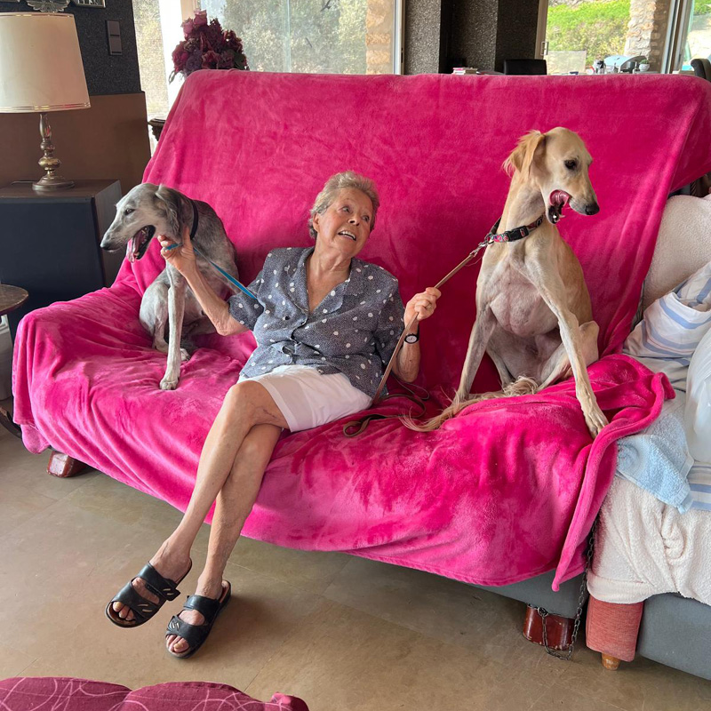 SALUKIS sind bekannt für ihre Anmut und ihren friedlichen Charakter. Es sind sehr sensible Tiere. Seit langer Zeit wissen wir, dass es zwei Salukihündinnen auf der Insel gibt, die sehr schlecht und nicht artgerecht gehalten wurden. Man wollte mit den beiden Schönheiten züchten – was aber nicht gelang. Was folgte daraus? Die beiden Tiere wurden von dem Besitzer in einem kleinen Zwinger gehalten ohne Nähe zu einem Menschen. Uns wurde zugetragen, dass es den beiden Hündinnen nicht gut ging. Eine Tierschützerin schickte uns ein heimlich gedrehtes Video und Fotos. Was wir da sahen brach uns das Herz, weil wir nicht helfen konnten. Nach dem der Besitzer merkte, dass sich die Hunde nicht zur Zucht eigneten, entschied er sich endlich die beiden Tiere zu TINI zu geben. Vor drei Wochen war es endlich soweit und die beiden Salukis sind nun endlich bei uns: Das schreiben wir jetzt so leicht hin…. Aber wie viele Bittgänge dahinter stecken, um die Hunde retten zu können, kann sich keiner vorstellen. Die beiden Hündinnen kennen keine Wohnung, keine Nähe zu einem Menschen und keinen Kontakt zu Artgenossen. Das lernen sie jetzt alles bei TINI kennen. Wie genial verträglich und lieb unsere eigenen spanischen TINI-Hunde sind, sieht man auf dem Video, wie die beiden Neuen ohne Gebell freundlich bei uns ins Rudel aufgenommen werden. Endlich, endlich können die beiden Salukis jetzt bei uns ihre angeborene Eigenschaft, Ihre Bewegungsfreude in langen Spurts ausleben. Beide Hündinnen sind noch etwas scheu, das Vertrauen zu uns täglich wachsen zu sehen, ist eine große Freude. Seit kurzem sind beide Hündinnen kastriert und haben eine dringend benötigte Zahnreinigung in der Narkose bekommen. Deshalb sind wir über jede Spende froh und danken Ihnen allen für Ihre Unterstützung