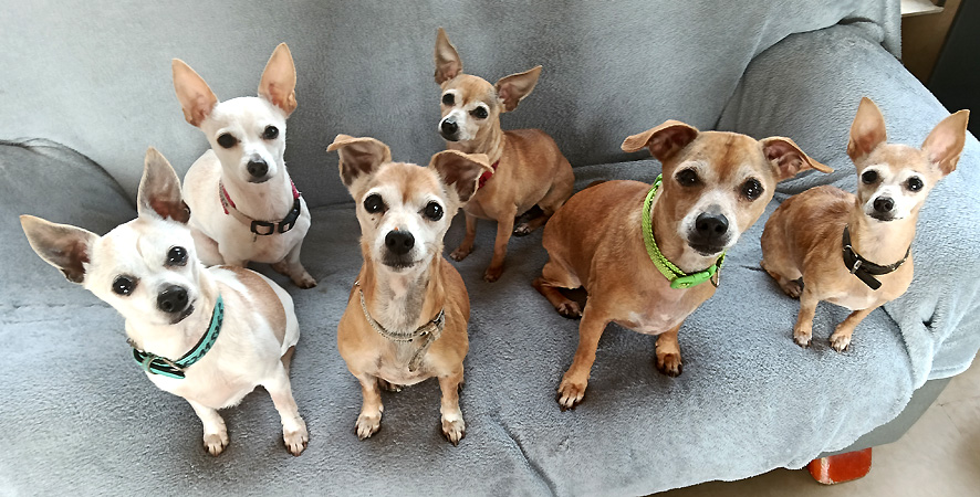 So sind sie nun bei uns angekommen, eine Gruppe von 6 Chihuahuas, zwei Rüden und vier Hündinnen. Jetzt werden sie erst einmal beim Tierarzt vorgestellt und bekommen einen Gesundheitscheck mit großem Blutbild, wir wissen noch nicht was uns erwartet, aber mit Sicherheit wissen wir schon jetzt, dass wir je Hund mindestens 500,-€, also um die 3000,-€ Tierarztkosten für diese Rasselbande haben werden, weitere erforderliche Behandlungen oder Operationen werden noch hinzukommen.