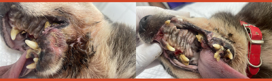 Wir danken dem Ärzteteam der Tierklinik für seine hervorragende Arbeit. Die Ärzte waren über den Zustand des Kiefers entsetzt. Sie sagten: Die erste OP der doppelten Fraktur des Unterkiefers auf Ibiza, war so schlecht gemacht, dass nach der OP dem kleinen Hündchen auf einer Seite permanent das Zünglein aus dem Mäulchen hing und es wurde so unsauber gearbeitet, dass sich im ganzen Kiefer Eiter bildete und die andauernde Entzündung den Kieferknochen zersetzt hat. Auch die mehr als zweimonatige Nachbehandlung damals brachte keine Besserung. Schließen des Mäulchens war nicht mehr möglich. Die Ärzte in Deutschland waren gezwungen den halben Unterkiefer zu entfernen. Wenn in 2 Wochen die Entzündungen ausgeheilt sind, ist eine weitere OP nötig, bei der dann eine Lippenplastik gemacht wird, damit Mausi in Zukunft wieder besser fressen und das Mäulchen schließen kann.